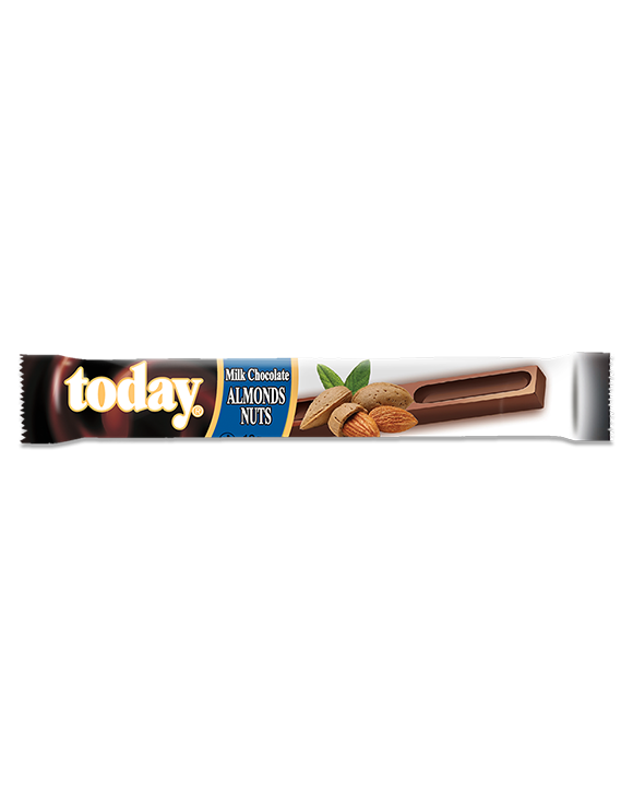 حبات اللوز الذهبي تتوسط حبةً من الشوكولا النقية الممزوجة بالحليب تناديك عن رفوف الحلويات، لا تقاومها ، تناولها واستمتع!