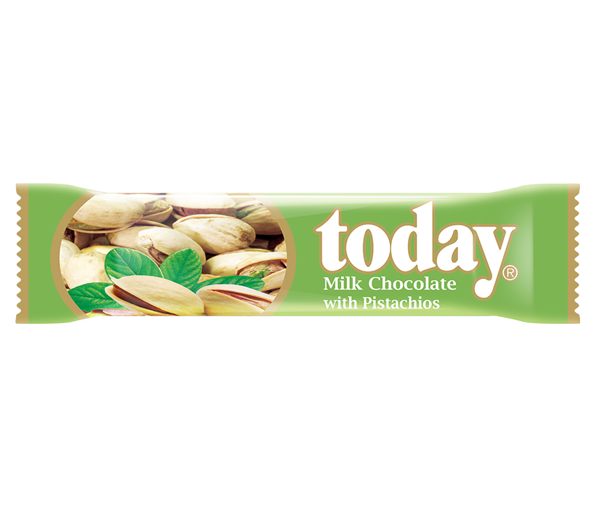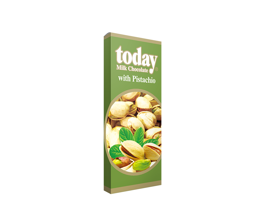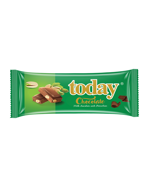 قشرت حبات الفستق الحلبي الخضراء الطازجة خصيصاً لتمتزج بالحليب وتتوسط حبات شوكولا توداي، لتستمتع بالنكهة الرقة الحلبية الشهية مع نكهة عجينة الكاكاو الطبيعية..